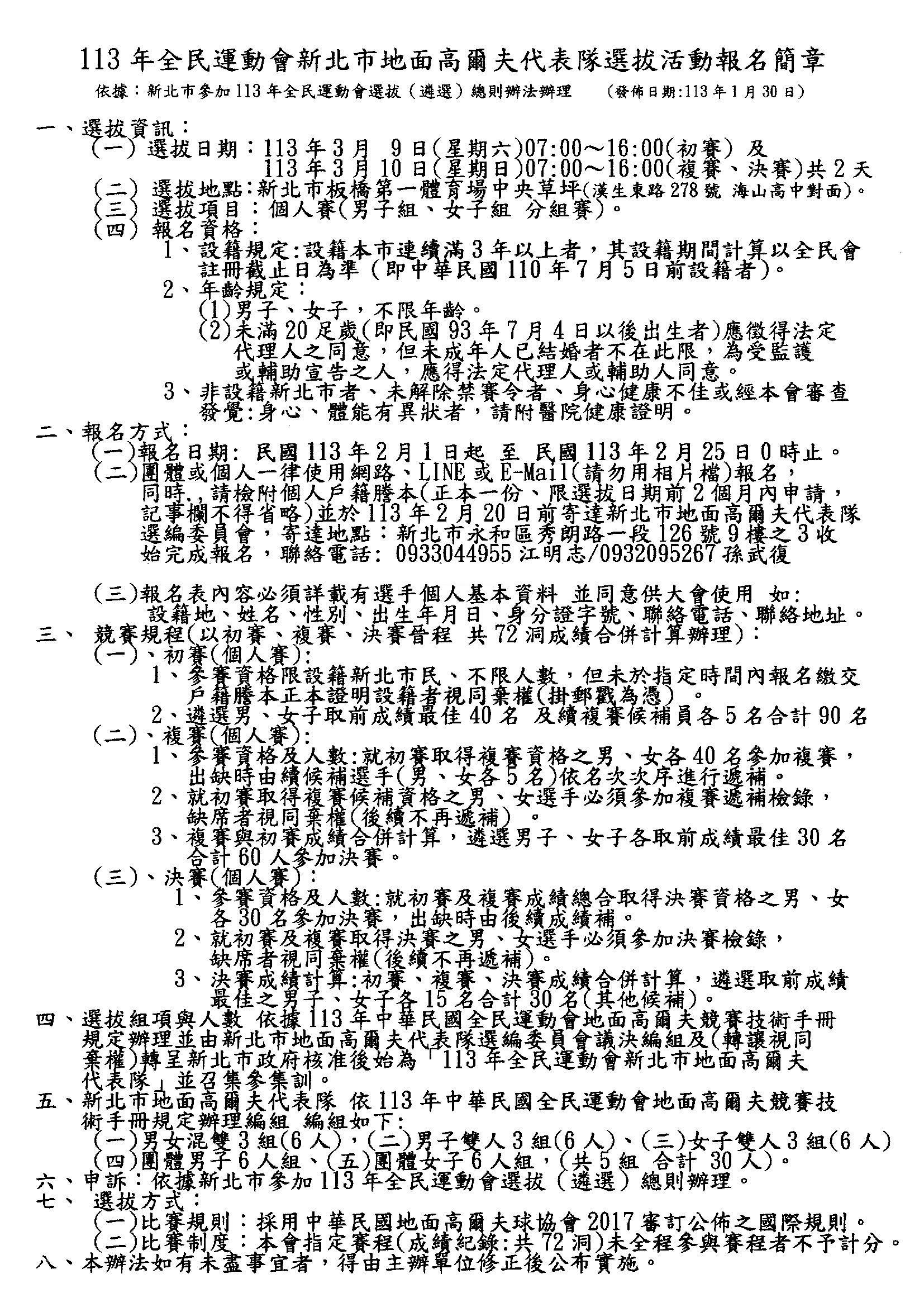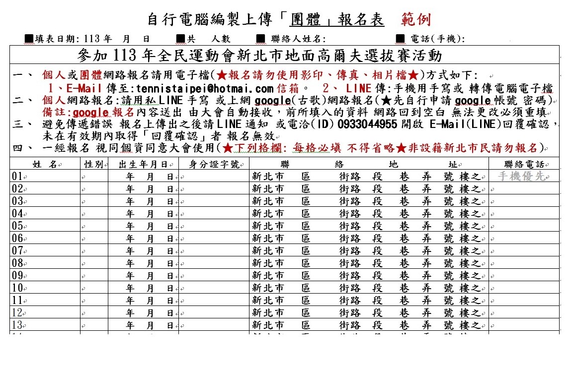 ★參加新北市113全民運動會代表隊選拔賽 選手(請勿使用兩種球) 注意: